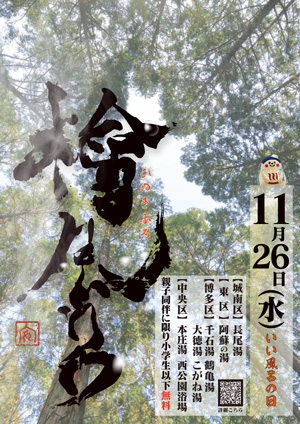 11月26日(いいふろの日)に福岡市内の銭湯で「ひのきの湯」を実施します
